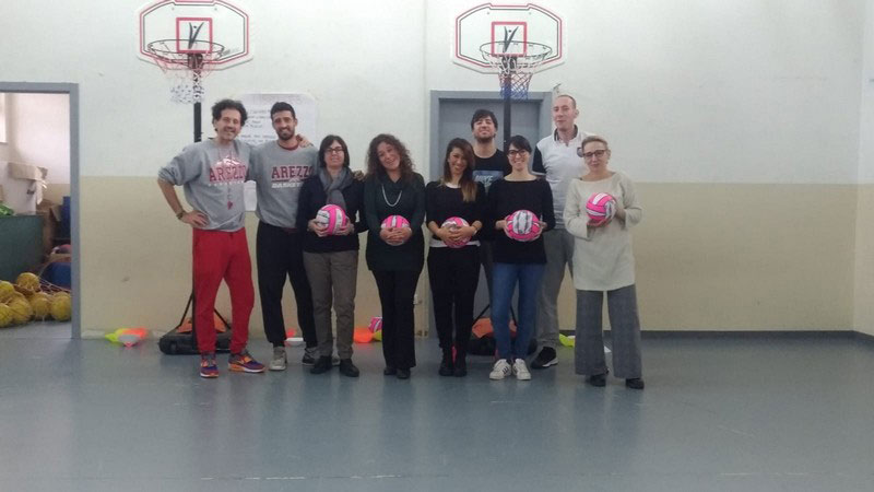 La scorsa settimana si è concluso il ciclo di lezioni del Progetto Scuola della Scuola Basket Arezzo nella Primaria Monte Bianco. Alla Festa Finale hanno partecipato oltre al Responsabile del Progetto Massimiliano Milli anche Marco Evangelisti nella doppia veste di istruttore ed ex Giocatore di Serie A, ed i giocatori della Serie C Vincenzo De Bartolo e Santiago Rodriguez.