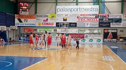 L’inizio partita è molto frenetico con entrambe le squadre che viaggiano a ritmo sostenuto, la BC Servizi prova a dare subito degli strappi ma dall’altra parte Empoli risponde con quattro triple che tengono la partita in equilibrio, nel finale di primo quarto gli amaranto riescono a prendersi sei punti di vantaggio grazie a due liberi di Toia che fissano il punteggio alla prima sirena sul 26-20. Arezzo prova ad allungare e si porta sul 32-23 con una tripla di Bischetti, ma gli ospiti non mollano la presa con Giannone che finalizza i canestri che riportano sotto la squadra di coach Valentino. All’intervallo la BC Servizi è ancora avanti 45-42 ed al rientro in campo la partita scorre gradevole sui piani dell’equilibrio con le difese che non riescono a fermare i rispettivi attacchi. Alla terza sirena il punteggio vede gli amaranto di coach Fioravanti sul 65-63 dopo che la Computer Gross aveva anche messo la testa avanti di una lunghezza con due liberi di Baccetti. L’ultimo parziale vede la difesa amaranto salire di tono e nonostante qualche palla persa la BC Servizi si conquista con le unghie 5 punti di vantaggio che prova a gestire. In fase difensiva la SBA riesce a bloccare le iniziative ospiti così con Buzzone e Prenga Arezzo arriva al +10 con due minuti da giocare (80-70). La reazione di EMpoli è repentina, prima Baccetti segna una tripla poi Giannone e Rosselli accorciano dalla lunetta fino al -3 (82-79) con 20 secondi da giocare. La BC Servizi perde palla così gli ospiti hanno il possesso per pareggiare, la difesa amaranto regge l’urto e dopo una lotta a rimbalzo il pallone finisce nelle mani di TOia che subisce il fallo sistematico avversario. In lunetta la mano del capitano della SBA non trema e così arrivano i due punti che fissano il punteggio finale sull’84 a 79 perchè negli ultimi secondi la Computer Gross non riesce a concretizzare.
