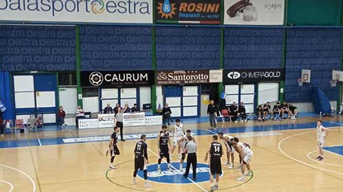 Al rientro in campo la partita viene gestita con oculatezza dalla SBA che mantiene il vantaggio oltre la doppia cifra facendo scorrere il cronometro, Lemmi da 3 punti porta gli amaranto sul +20 (69-49) poi la BC Servizi arriva al massimo vantaggio sul 77-56 con Dal Pos che firma la quarta tripla della sua partita. I liguri rosicchiano qualche punto prima dell’ultimo mini intervallo 82-67 (al 30′) ma la gara rimane saldamente in mano al quintetto di coach Fioravanti che conduce in porto la vittoria con autorevolezza con il punteggio finale di 98-78 ricevendo i convinti applausi del pubblico del Palasport Estra.